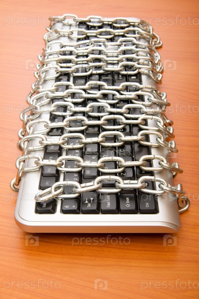 Компьютерная клавиатура, переплетенная цепями