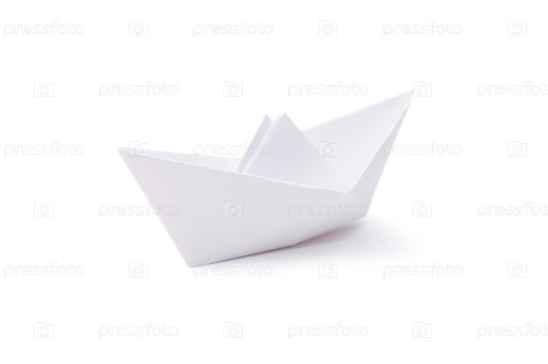Бумажный кораблик на белом фоне