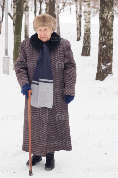 Портрет пожилой женщины в зимнем лесу