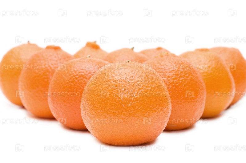 Свежие мандарины крупным планом на белом фоне