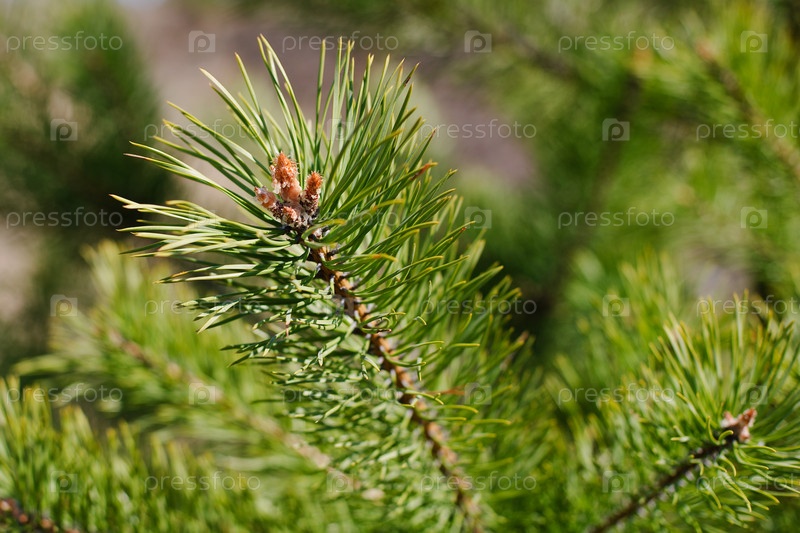 Ветвь молодой сосны, сфотографированная весной