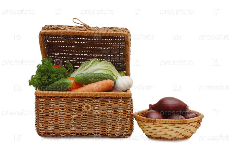 Свежие овощи в плетеной корзине