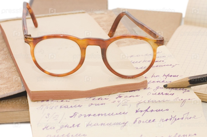 Старые письма и очки крупным планом