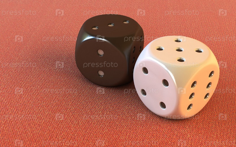 Кубики для игры в кости на красном сукне