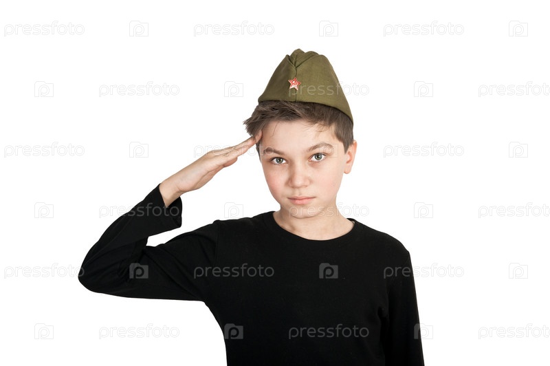 Портрет мальчика в пилотке на белом фоне
