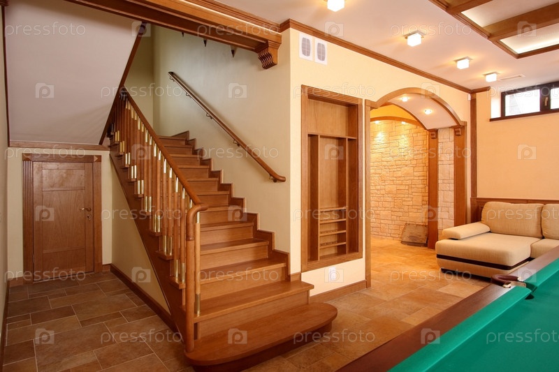 Лестница вверх от естественного дерева в бильярдной комнате
