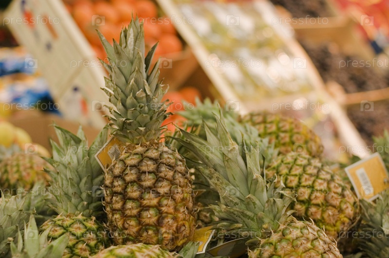 Ананасы на полке в супермаркете