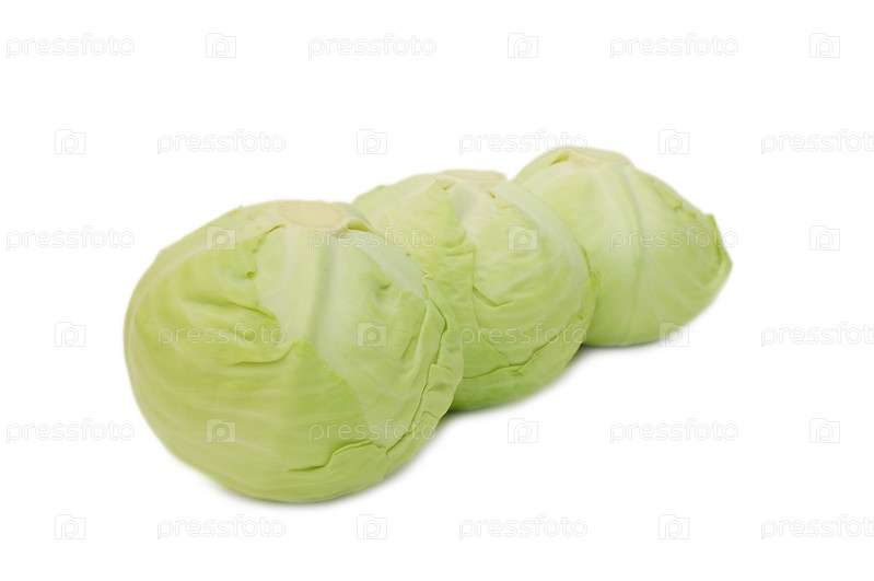 Три кочана капусты на белом фоне