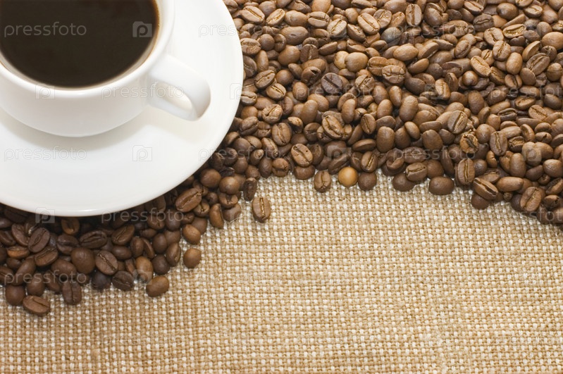 Чашка кофе на кофейных зернах