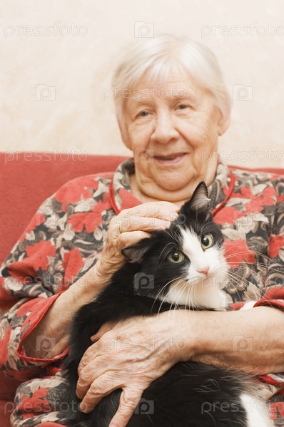 Бабушка с котом на диване