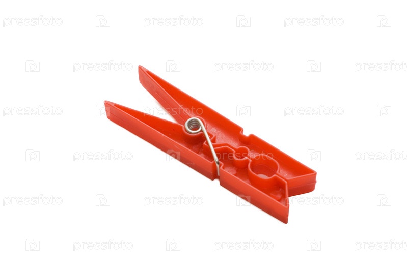 Красная прищепка на белом фоне