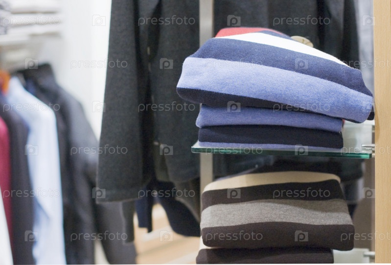 Полки с мужской одеждой в магазине
