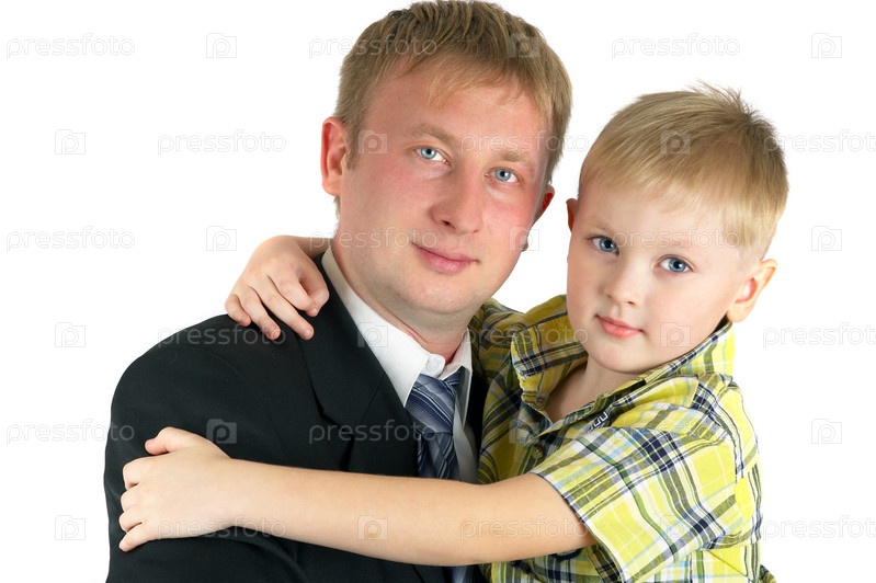 Сын на руках у отца. Счастливая семья
