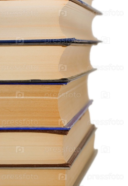 Стопка старых книг крупным планом на белом фоне