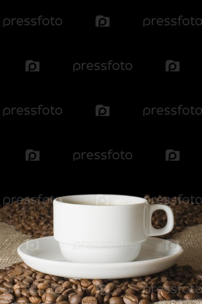 Чашка кофе на кофейных зернах