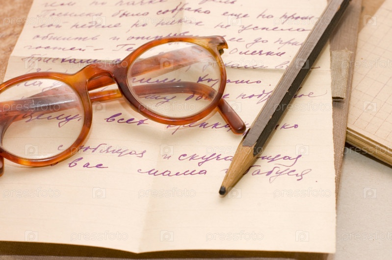 Старая бумага, письма и очки крупным планом