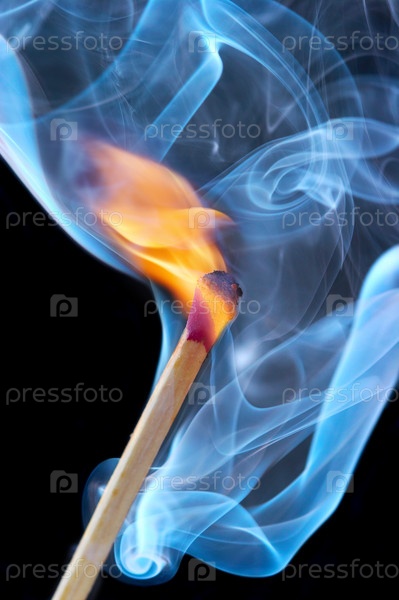 Зажженная спичка на черном фоне