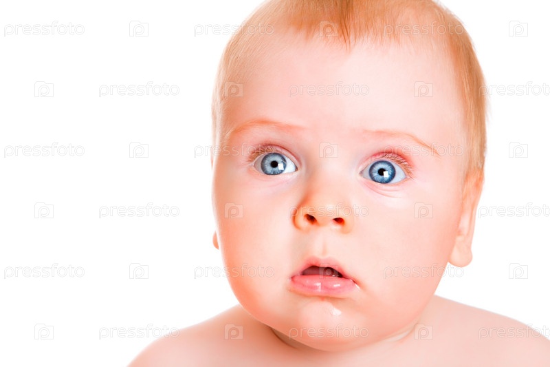 Шестимесячный ребенок на белом фоне
