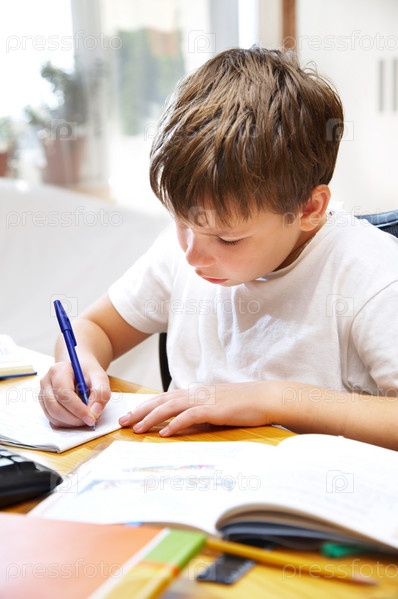 Мальчик делает уроки за столом