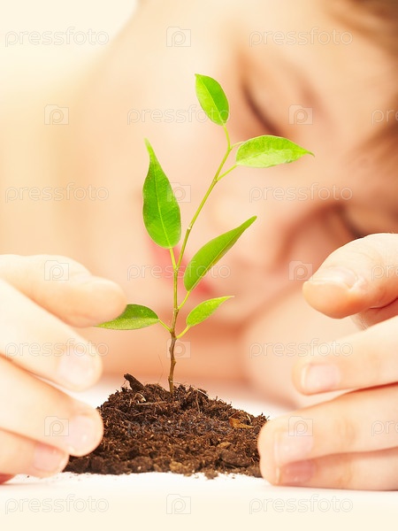 Спящий мальчик у молодого растения