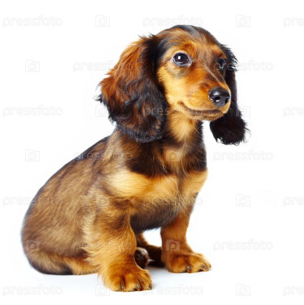 Щенок таксы на белом фоне