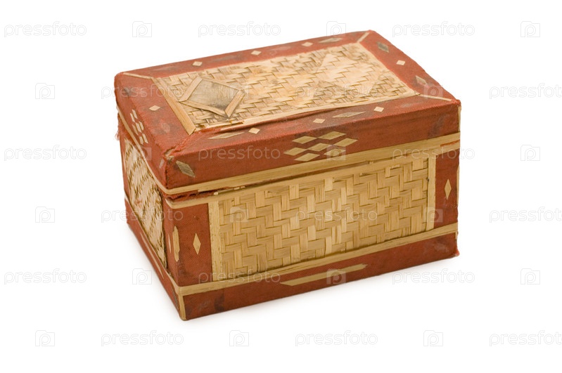 Деревянная шкатулка крупным планом на белом фоне