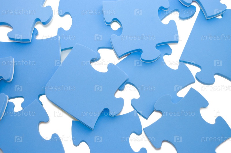 Кусочки паззла на белом фоне