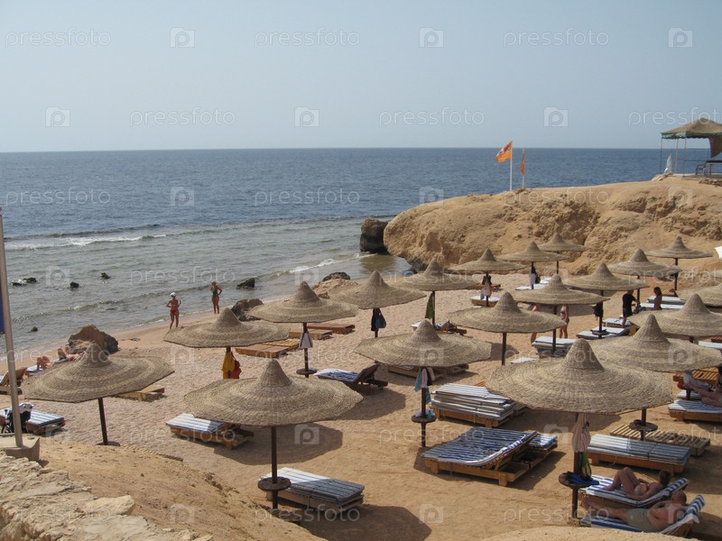 Красное море, пляж с зонтиками от солнца