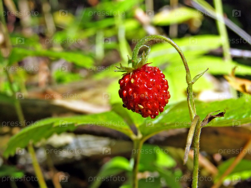 Ягодка земляники в лесу