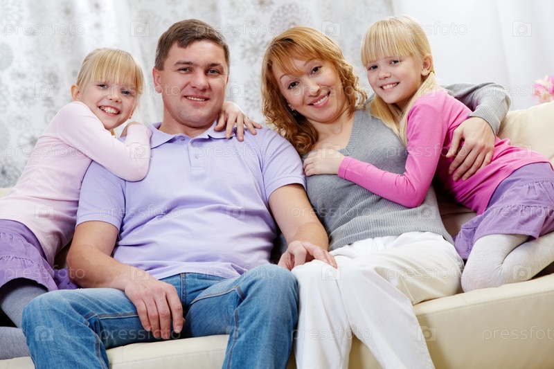 Счастливая семья на диване