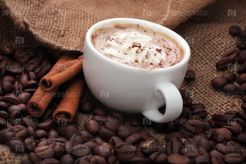 Чашка кофе со сливками и корицей