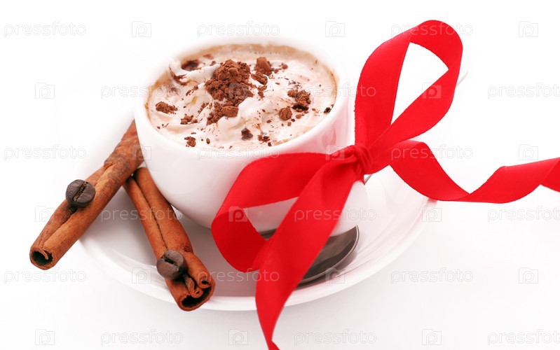 Чашка кофе со сливками и корицей