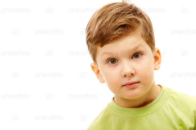 Портрет симпатичного мальчика крупным планом, на белом фоне
