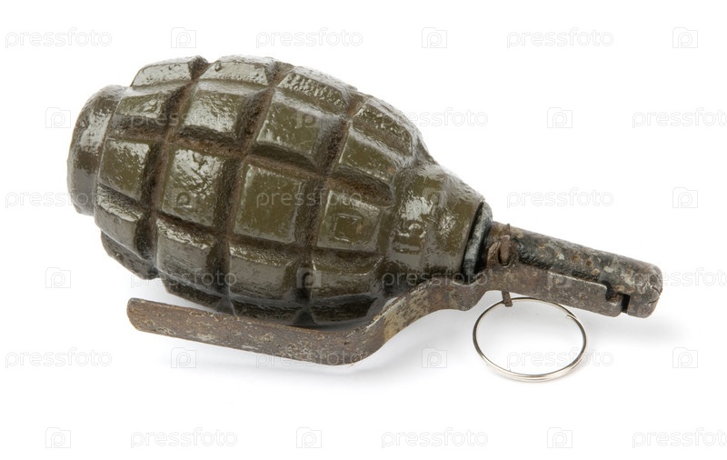 Старая ручная граната на белом фоне