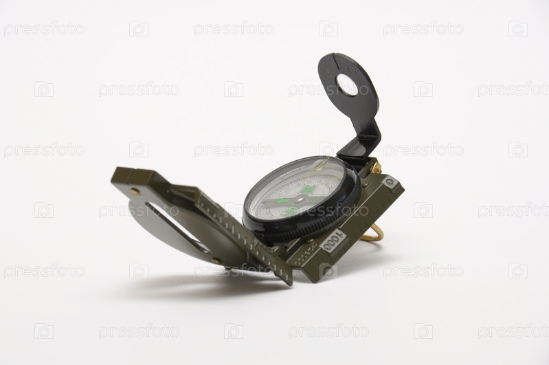 Складной компас на белом фоне