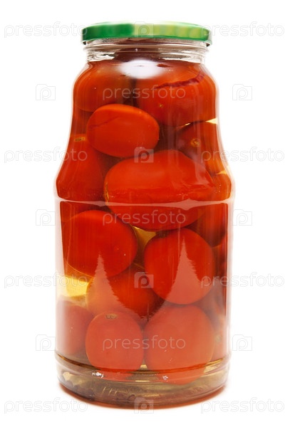 Консервированные помидоры в стеклянной банке