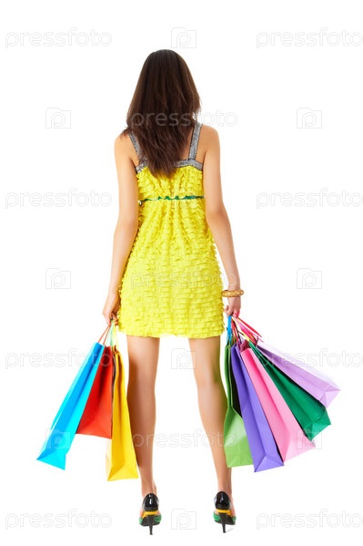 Девушка с покупками на белом фоне