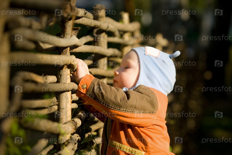 Любопытный ребенок у деревянного забора