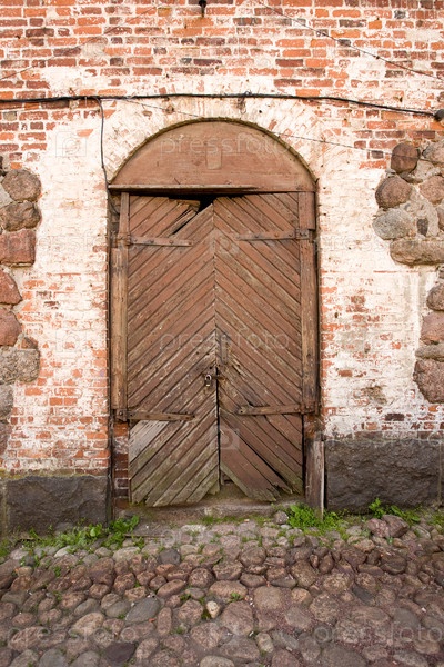 Старая деревянная дверь в стене здания