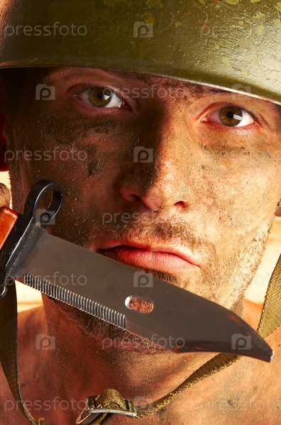 Солдат с ножом у лица