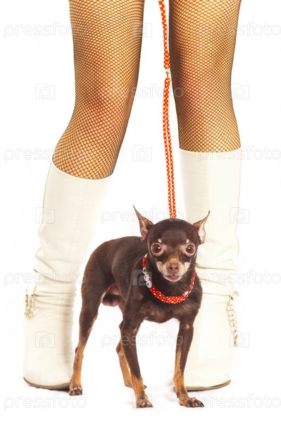 Русский терьер на фоне женских ног