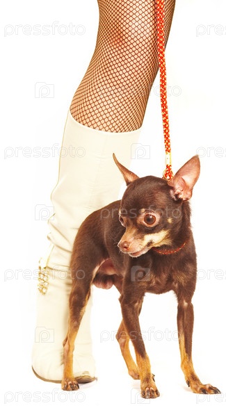 Русский терьер на фоне женских ног