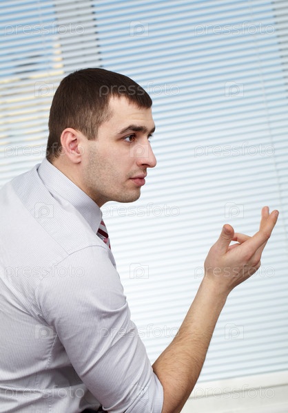 Деловой мужчина в офисе за обсуждением