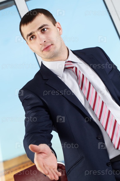 Деловой мужчина в офисе здоровается за руку, деловая встреча