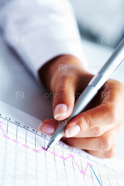 Женская рука, рисующая график, крупный план