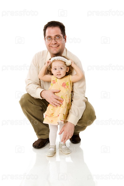 Отец с дочерью на белом фоне
