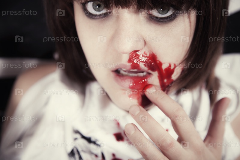 Портрет молодой женщины с окровавленным лицом