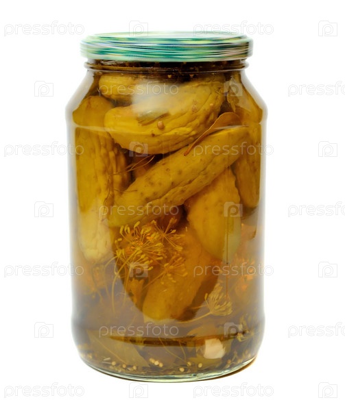Банка маринованных огурцов, изолированная на белом фоне