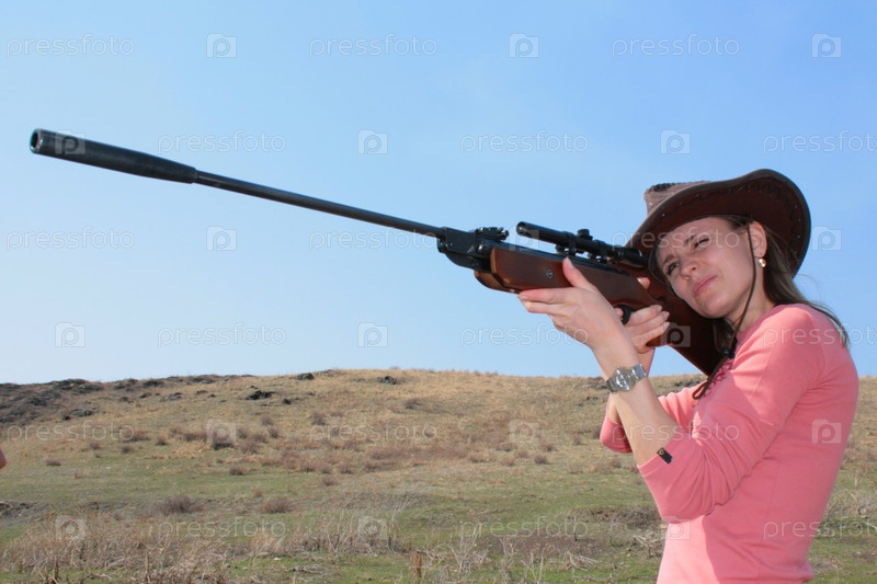 Молодая женщина с винтовкой стреляет