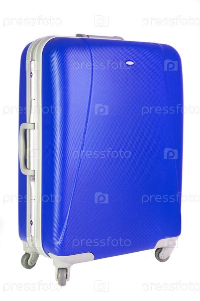 Синий чемодан на белом фоне